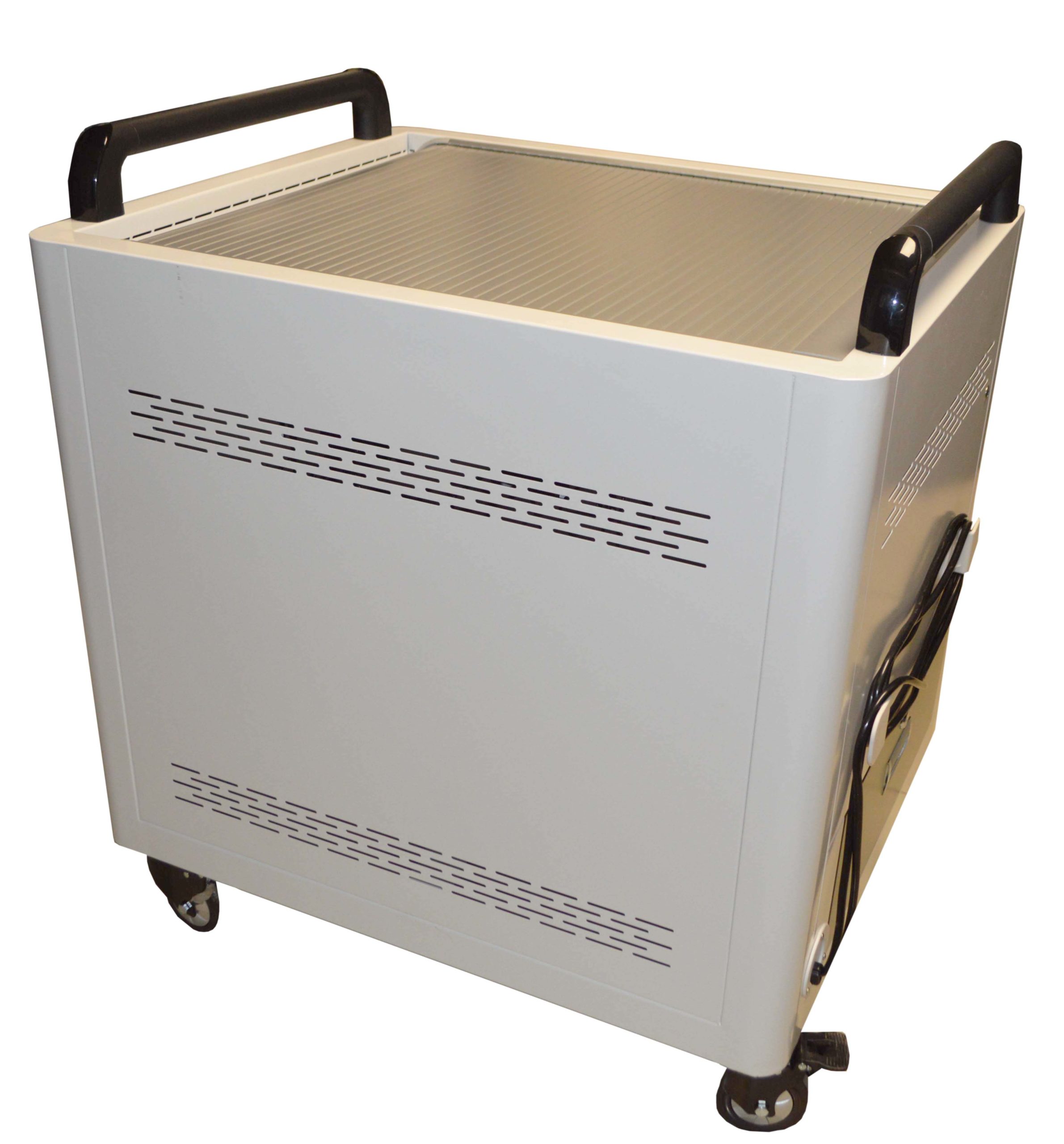 Cartice 32 Basket est un chariot multimedia concu pour ranger et charger 24 a 32 tablettes 10 pouces via 4 paniers amovibles.