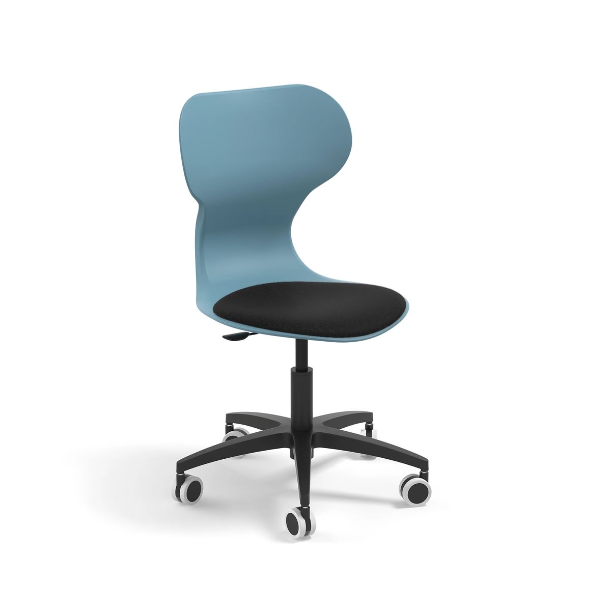 Chaise MIA BIG LIFT : chaise ergonomique pivotante dotée d’un grand dossier courbé pour un confort optimal et d’un vérin à gaz permettant un réglage fluide de la hauteur d’assise. Sa base à cinq branches en polypropylène et ses roulettes sans frein assurent une excellente stabilité et une mobilité fluide, idéale pour les espaces de travail collaboratifs, les salles de classe et les bureaux modernes.