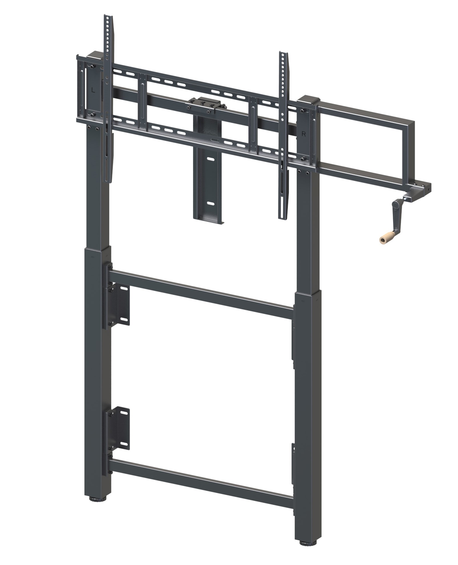 SUP-MOBI-ELEC est un support mobile motorise pour ecrans interactifs jusqu’a 86 pouces, avec reglage electrique de la hauteur via telecommande.
