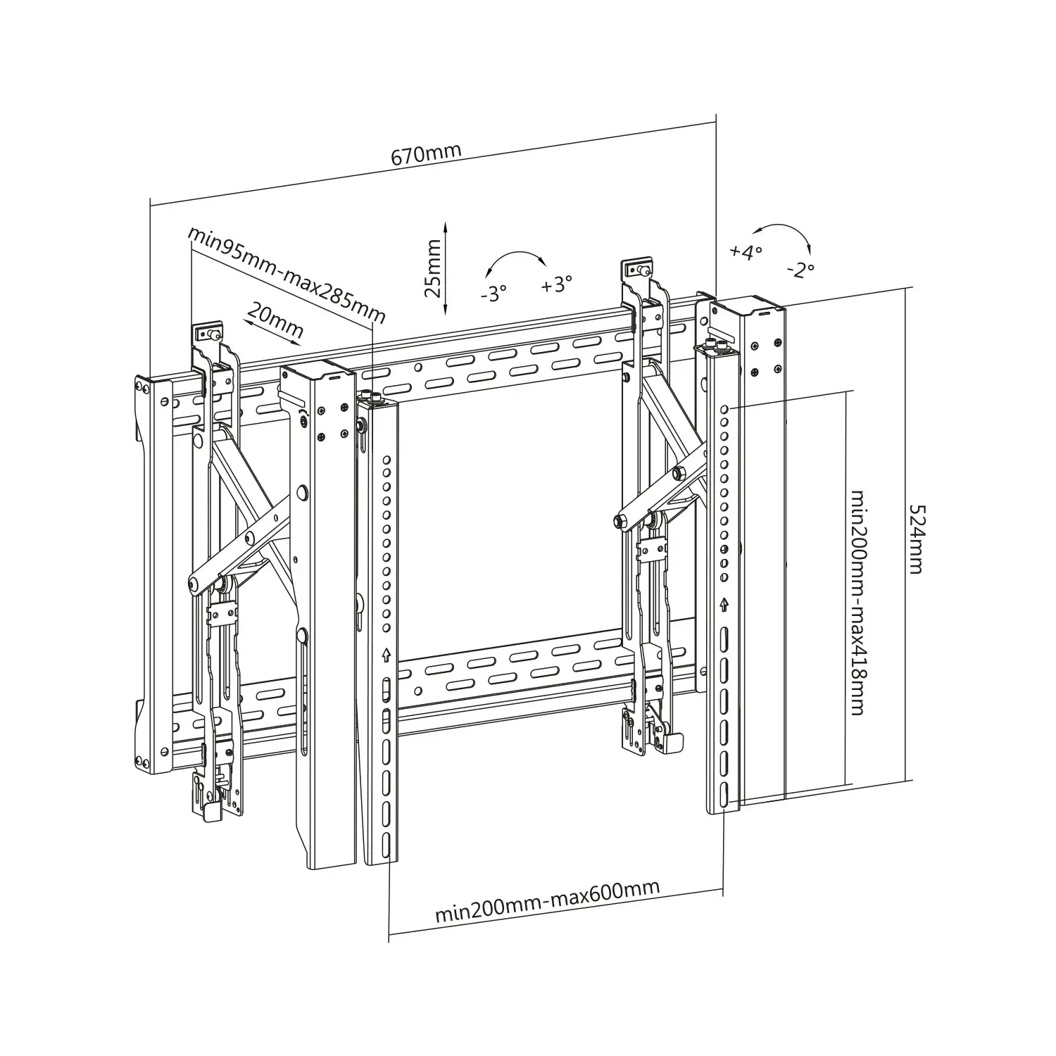 Support mur d'images pour écran TV 45''-70'' Push Pull : Créez un mur d'images saisissant avec le support mural slim Kimex. équipé de la fonction push-pull pour les.