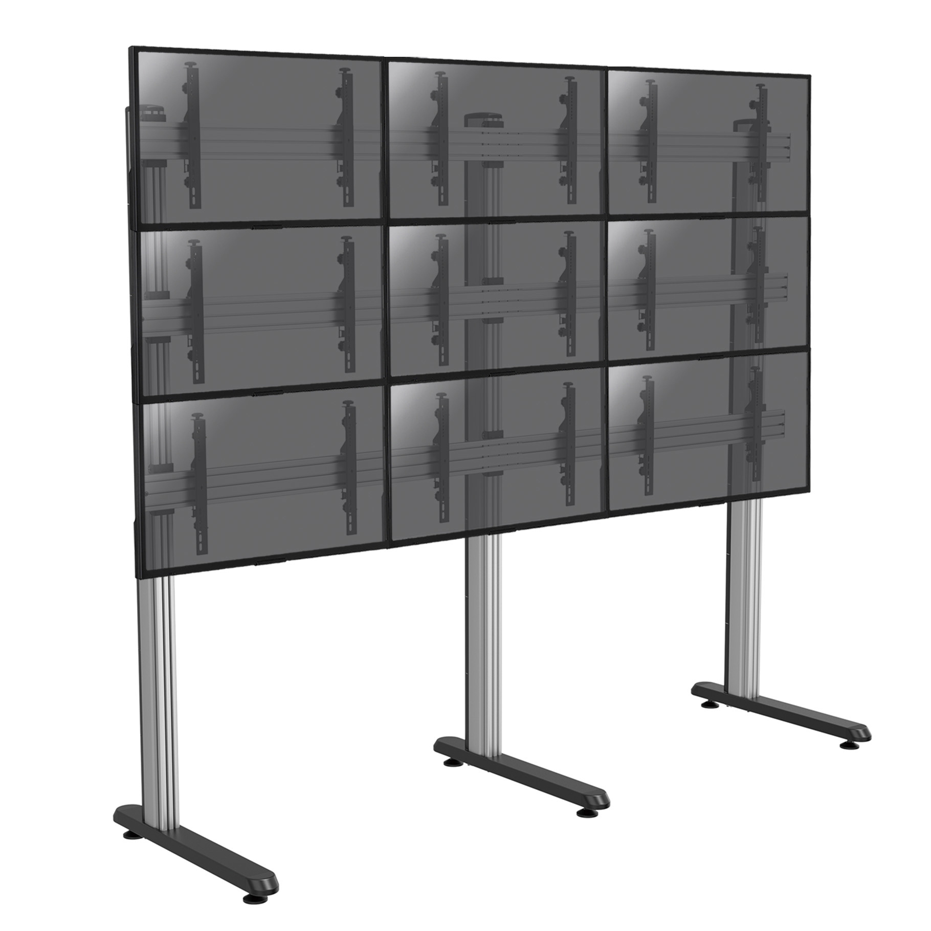 Support sur pieds mur d’images pour 9 écrans TV 50"-55" : Le support KIMEX 031. disponible à poser. à roulettes ou à visser. offre une solution professionnelle robuste et modulaire pour murs d’images XXL.
